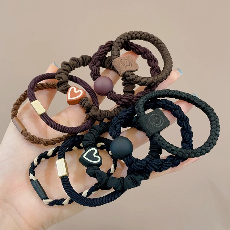 🔥 Set 5 / 10 Dây Buộc Tóc Cao Su Co Giãn Màu Đen / Nâu Sang Trọng Dành Cho Nữ đang giảm giá!