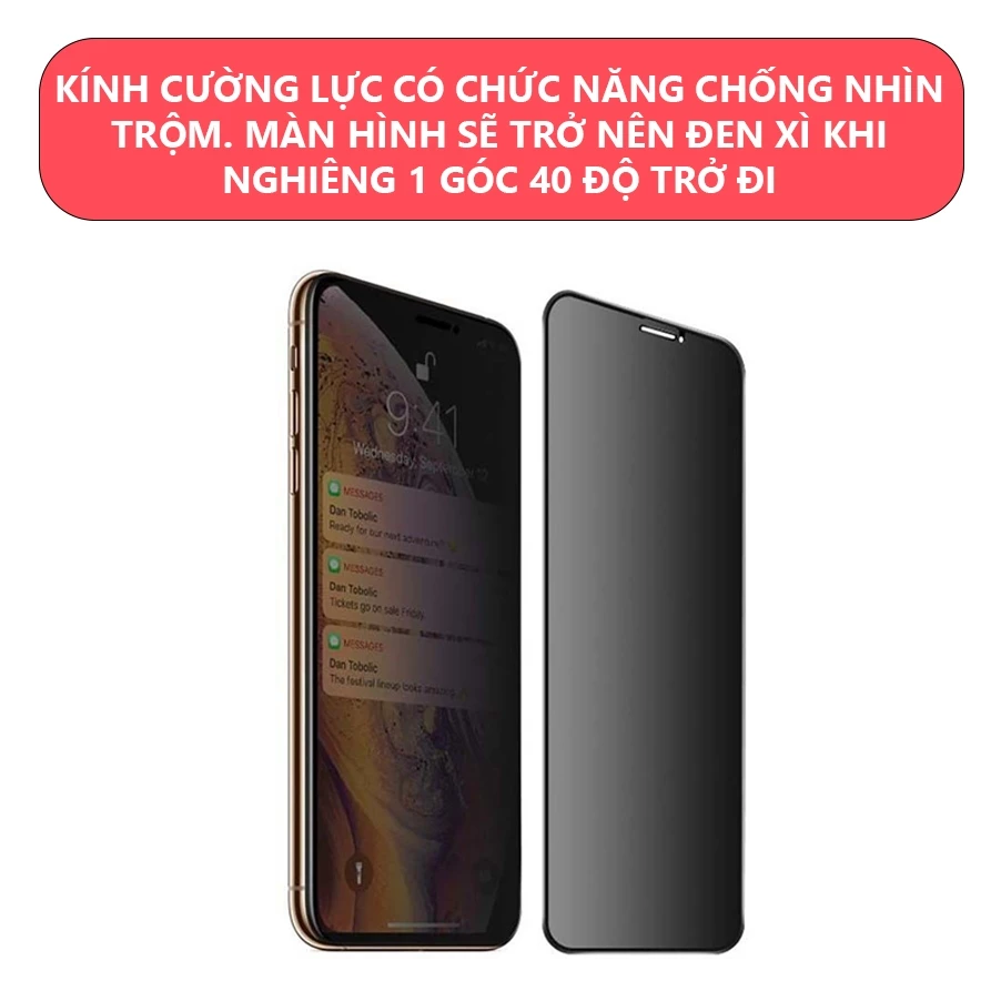 Kính Cường Lực Chống Nhìn Trộm, Chống Vân Tay và Siêu Trong Suốt cho iPhone X – XR – XS Max – 11 – 12 – 13 – 14 – 15 – 16 Pro Max Plus
