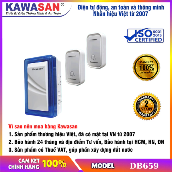 🔥 Chuông Cửa Không Dây DB659 (2 Nút Bấm 1 Chuông) – Kawasan đang giảm giá!