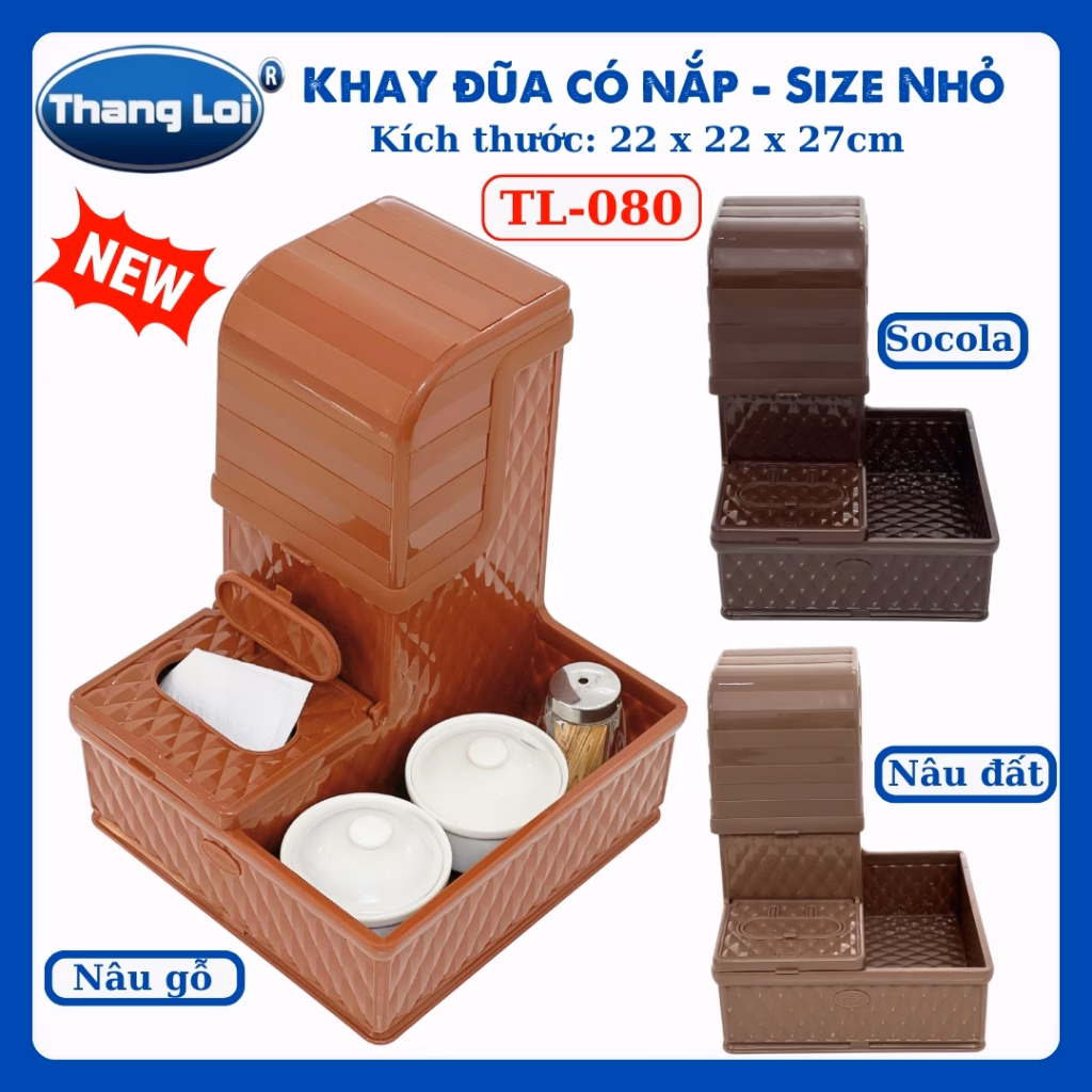 🔥 Khay Ống Đựng đũa có nắp kèm hộp giấy và khay đựng gia vị Nhựa Thắng Lợi size nhỏ 22x22x27.5 TL080 đang giảm giá!