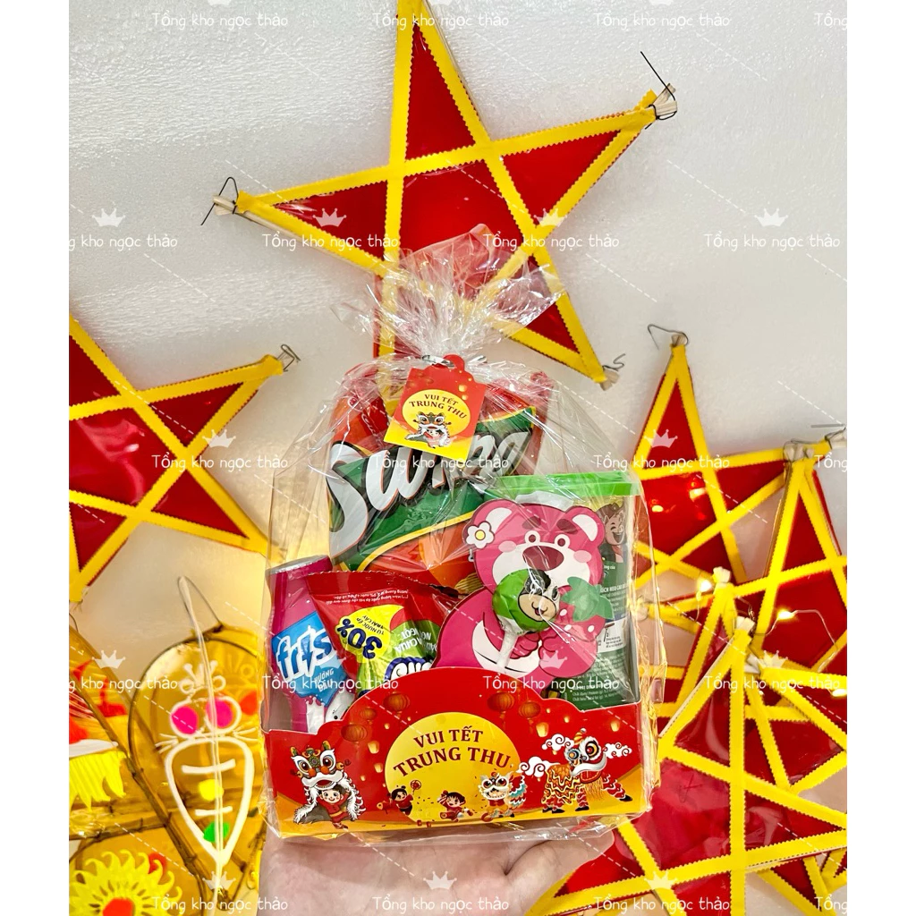 - Tiện lợi: Sản phẩm này bao gồm cả túi đựng quà và đế giấy đựng bánh kẹo, giúp bạn dễ dàng chuẩn bị quà tặng.