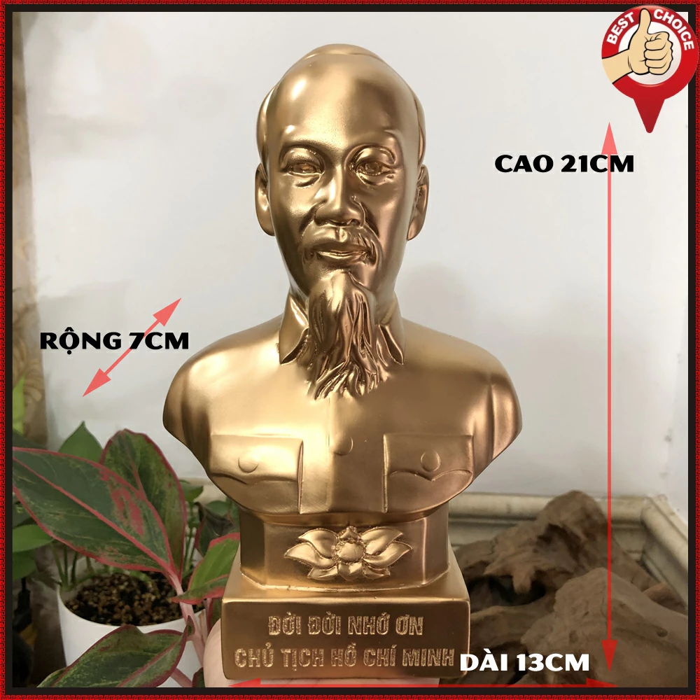 🔥 Tượng đá trang trí tượng bán thân Bác Hồ Chủ Tịch Hồ Chí Minh – Size Lớn Cao 21cm – Màu nhũ đồng đang giảm giá!