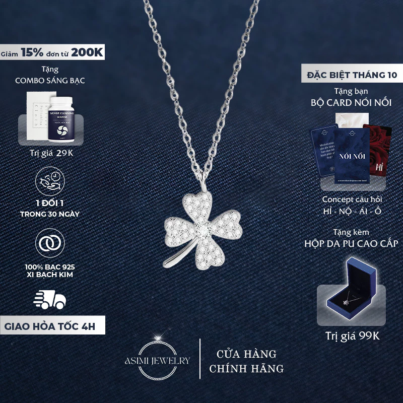 - Phù hợp với nhiều dịp: dây chuyền bạc cỏ 4 lá có thể là quà tặng cho sinh nhật, kỷ niệm, hoặc đơn giản là một món quà thể hiện tình cảm.