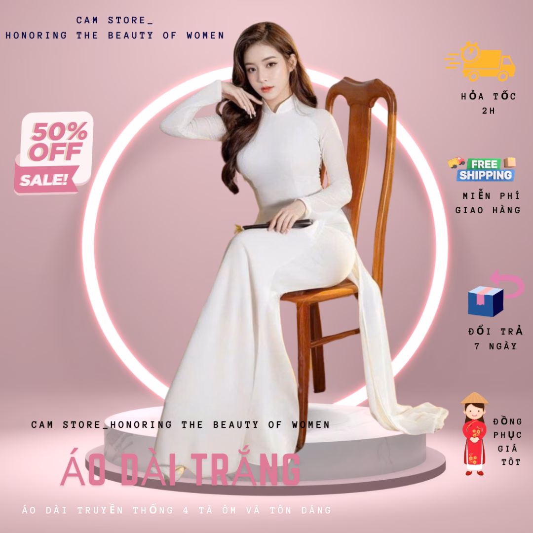 🔥 Áo Dài Truyền Thống 4 Tà Màu Trắng – Áo Dài Học Sinh Vải Chiffon – Cam Store đang giảm giá!