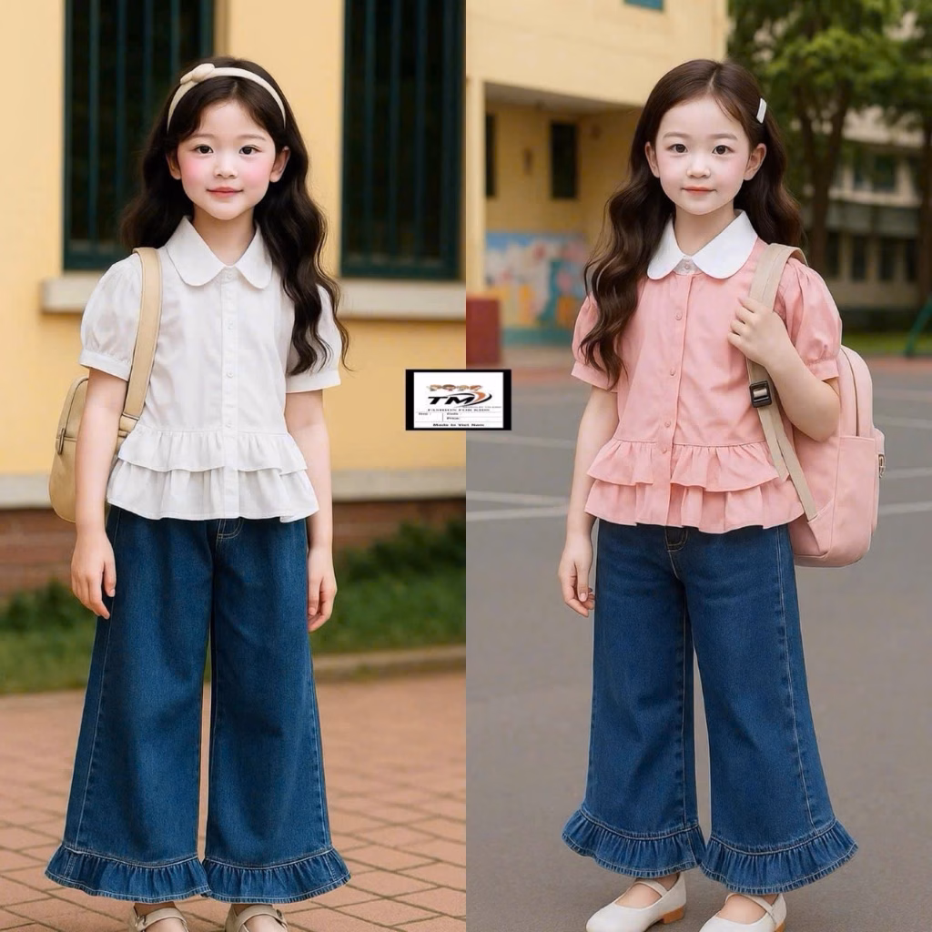 Đánh giá bộ quần áo trẻ em Sét áo sơ mi quần jean bagy đi học bé gái size đại