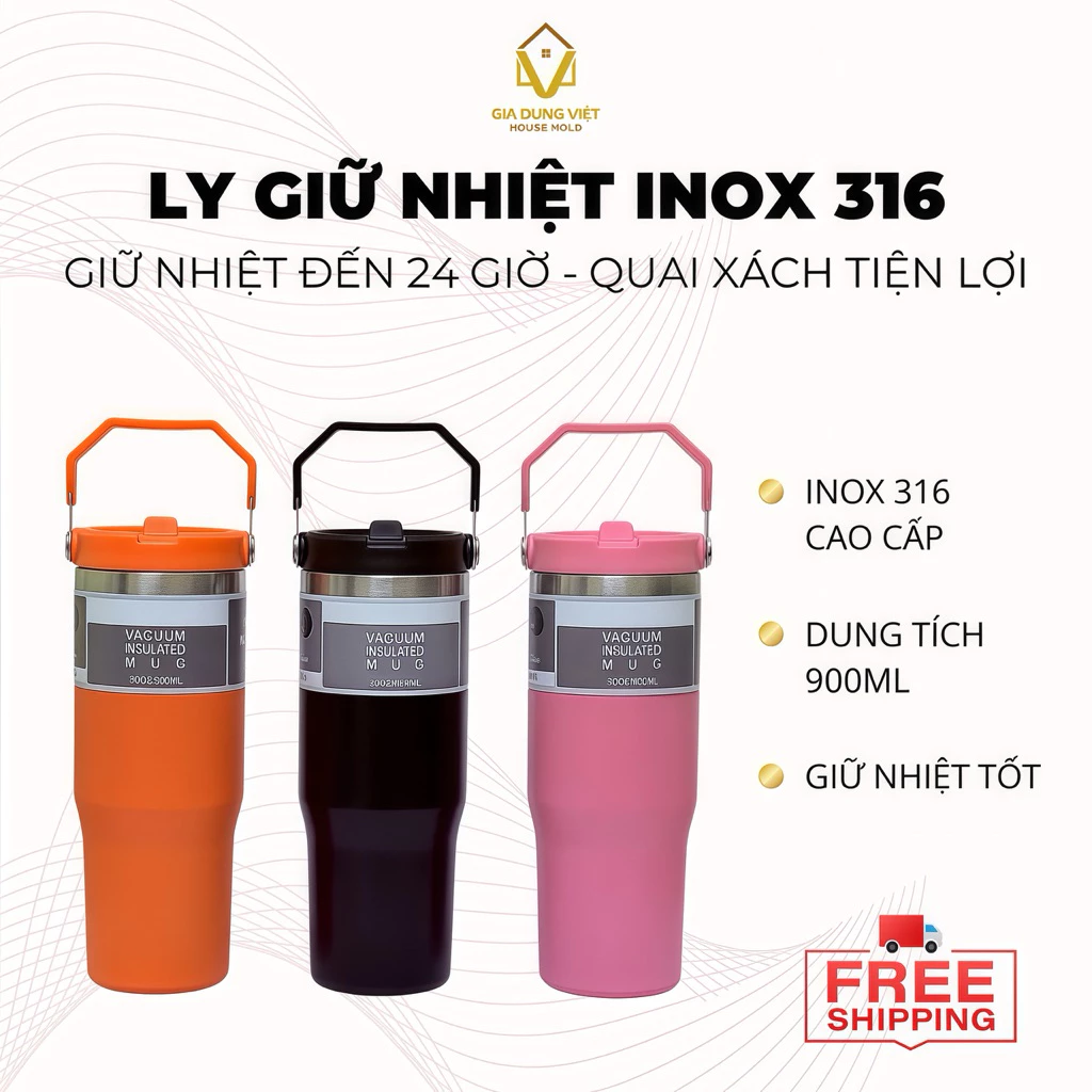 🔥 Ly Giữ Nhiệt Inox 316 900ml, Bình Giữ Nhiệt Kèm Ống Hút, Giữ Nhiệt Đến 24 Giờ, Tiện Dụng Hằng Ngày đang giảm giá!